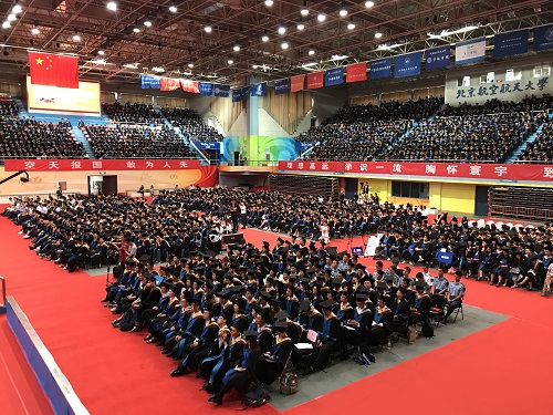 徐惠彬校长在讲话中对同学们提出了三点期望,希望同学们“不忘初心,担当使命”,秉承北航人“四爱”的精神追求,传承北航人空天报国的理想责任,在担当国家富强、民族复兴的时代使命中铸就精彩的人生;希望同学们“务实求真,笃学不倦”,在未来无论是求学深造还是工作实践,都要坚守求真务实的品格,永葆求知热情,坚持终身学习、永立时代潮头;希望同学们“胸怀宽广,开放包容”,用“海纳百川,有容乃大”的博雅情怀,去书写“敢将长剑撑寰宇,欲挽天河洗甲兵”的空天壮志。
