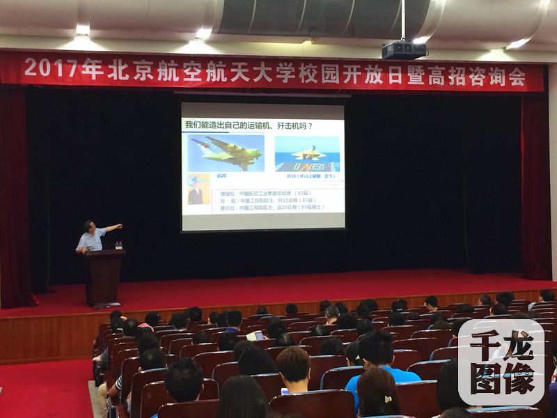 6月24日,北京航空航天大学举办2017年校园开放日活动,北京和外地的考生、家长走进北航,零距离了解该校2017年各大专业招生情况和毕业就业情况。图为该校副校长黄海军在介绍北航的光荣校史。千龙网记者 于振华摄