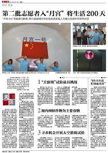 《新京报》2017年7月10日整版报道我校“月宫365”实验: