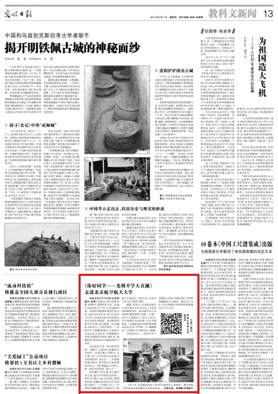 《光明日报》9月7日13版报道我校2017级本科新生入学: