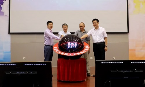 北航副校长黄海军,中国工程院院士、欧亚科学院院士、中国人工智能学会理事长李德毅,中国电子信息产业发展研究院院长卢山,百度公司副总裁王海峰,共同开启了北航软件学院人工智能专业方向