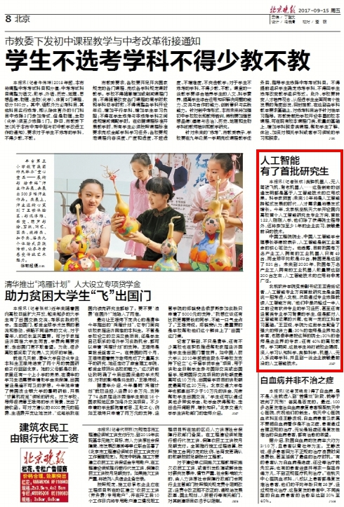 本报讯(记者张航)类脑机器人、无人驾驶飞机、背包机器人……这些新奇的创造发明都是基于人工智能技术的应用成果。科学家预言:未来10年将是人工智能跨越式发展的时代,人才需求量将爆发式增长。今年,北京航空航天大学开设国内高校首个人工智能研究生专业方向,首批122人刚刚入学,他们除了获得院士指导外,还将参加至少1年的企业实习,接触最前沿的技术。