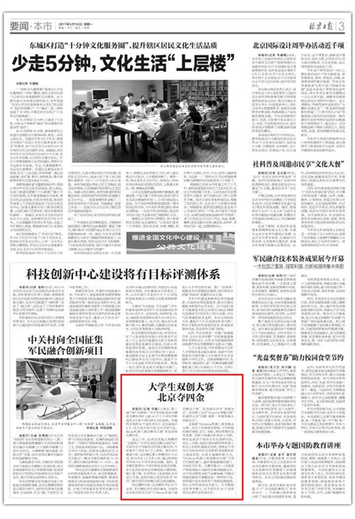 走过三年,这项全国最大规模的“互联网+”大学生双创大赛已成长为广大青年学子创新创业的强力催化剂,今年吸引了全国150万人参加。据北京市教委介绍,北京赛区累计参赛项目3113项,参与学生1.4万多人次,通过网审初评共有150个项目参加决赛。最终,北京赛区推荐20个项目参加全国总决赛,有8支团队获得总决赛现场比赛资格。据记者了解,北京的这八支创客队伍均实力不俗,其项目核心成员有多名“90后”,部分项目在参赛之前已成功融资。