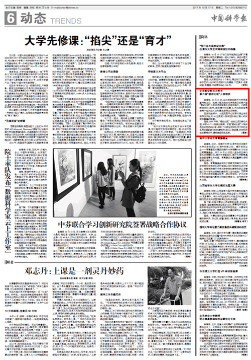 中国科学报2017年10月17日(记者 陈彬)报道: