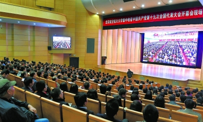 记者了解到,除了600多名师生集中收看十九大开幕会以外,各院系单位也安排了分会场,组织本单位师生集体收听收看开幕会。此外,上午清华大学、北京大学、中国人民大学等高校的师生也在认真收看十九大开幕会,聆听学习总书记的报告。