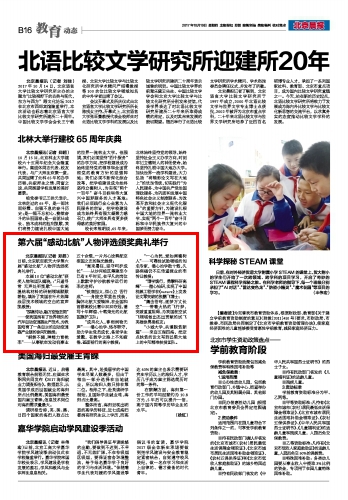 北京晨报讯(记者 郑超)日前,北京航空航天大学第六届“感动北航”人物评选颁奖典礼举行。