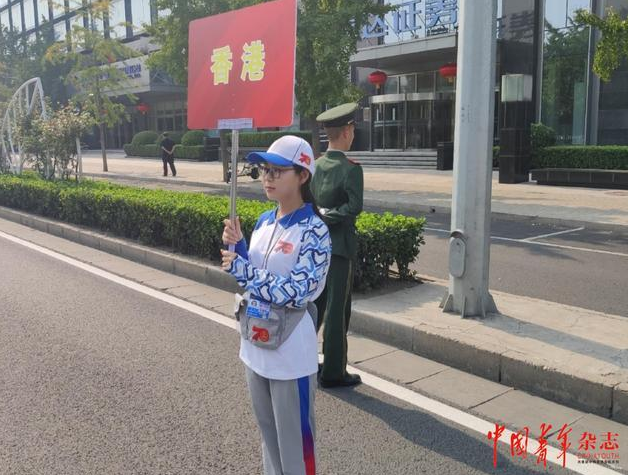肖文颂告诉记者,他所在的九大队第一排紧挨标语车,尤为关键,人员大多会经过动态调整,以保证最佳状态。但是他的位置一直没动,获得了同学们“铁打的肖文颂,流水的第一排”的说法。