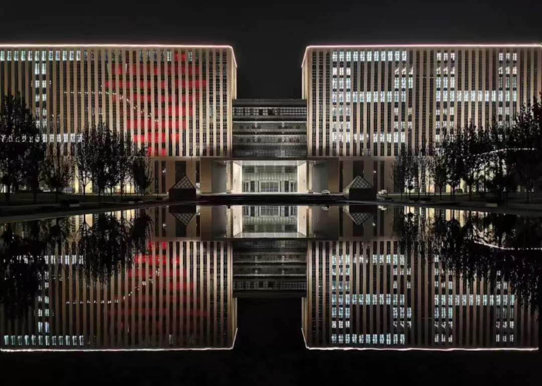 墨色夜空,星河交错,沙河主楼上,“I??BH”悄然亮起,美轮美奂的天空之镜水面,倒映出北航人的心声。