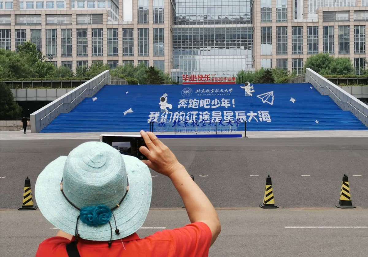 今天,北航毕业典礼的现场设在主楼广场,3495名北航本科毕业生和家人亲友在“云端”相聚,与校园告别。为了增加仪式感,此前,北航已把3000多套学位服逐一寄送给毕业生,从6月27日到今天还推出持续30个小时的毕业慢直播,昨晚,老主楼、新主楼、沙河主楼等校园地标建筑亮起红心,上演巨幅灯光秀,向年轻的“后浪”们表白。