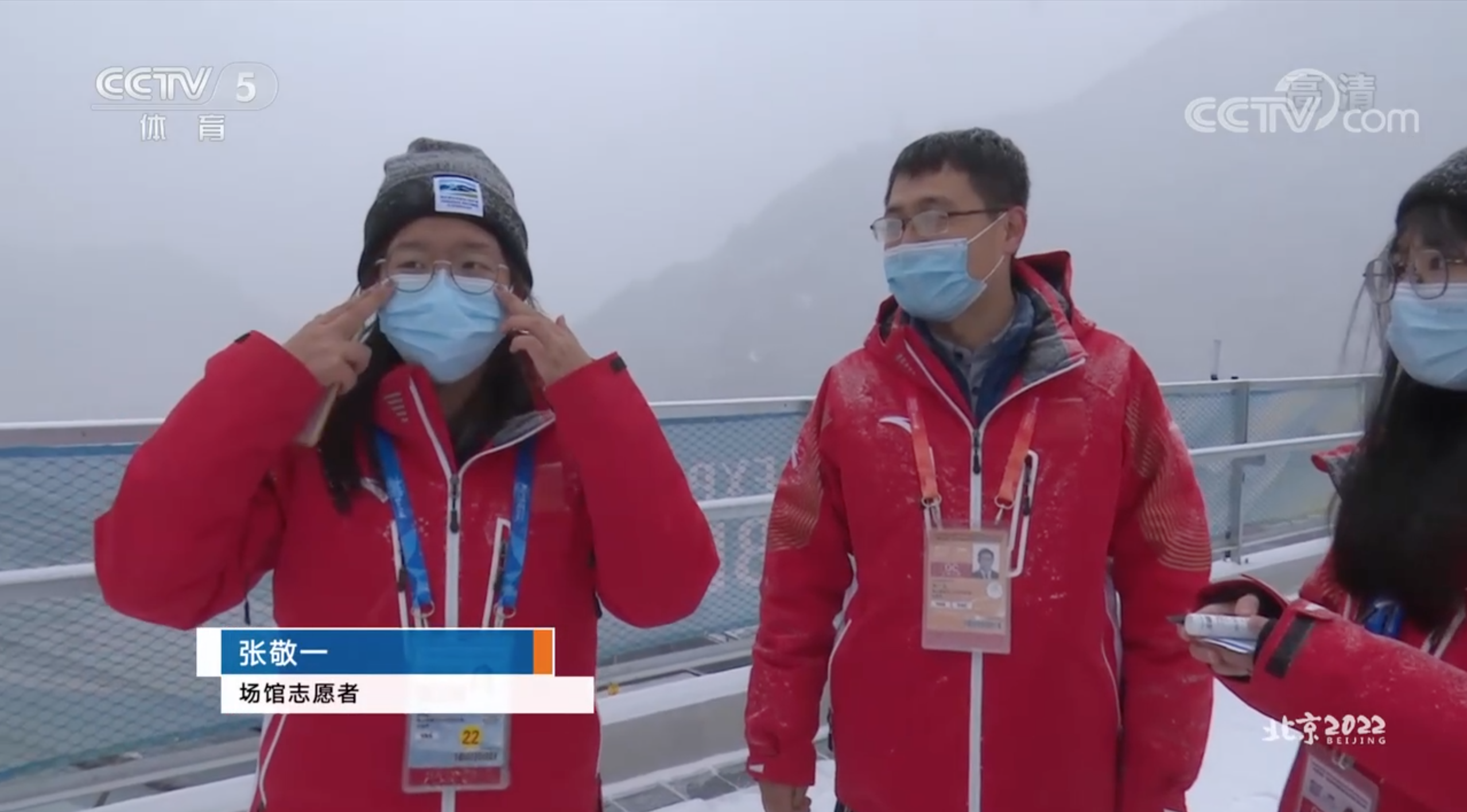 【同期】延庆场馆群志愿者协调经理齐慕洁:在2008年(奥运会)我们用志愿者的微笑感动了世界,2022年(冬奥会)我们要戴口罩,有可能还有户外的脖套会遮住我们的脸,这个问题我也请教过礼仪老师:“我们露不出微笑的话,怎么才能让别人感觉到我们是热情的?”后来礼仪老师告诉我:“首先,眼睛是心灵的窗户,要用我们温暖的眼神和目光让他们感受到?!痹儆芯褪俏颐茄┥舷钅看┑暮芎裰?,要用我们标准的肢体动作和流程让他们感受到我们志愿者是非常专业的。再加上雪上冬季我们的志愿服务需要一定的专业性,不管是滑雪的技能还是语言的技能,所以我们还需要提高志愿者的专业水平,让他们感受到我们的周到和细心。