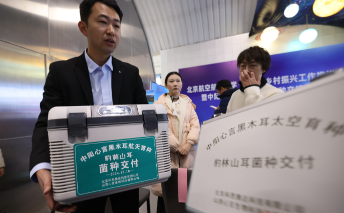 伊志豪介绍,北航每年组织相关学院和科研团队赴中阳县开展“点对点”调研,深入了解农民实际需求,深入产业基地了解产业困境。早在2023年,北航生物与医学工程学院教授刘红在中阳县调研时,获悉该企业有开展黑木耳空间搭载进行航天育种的需求,于是此次黑木耳菌株搭载实践十九号卫星项目应运而生。