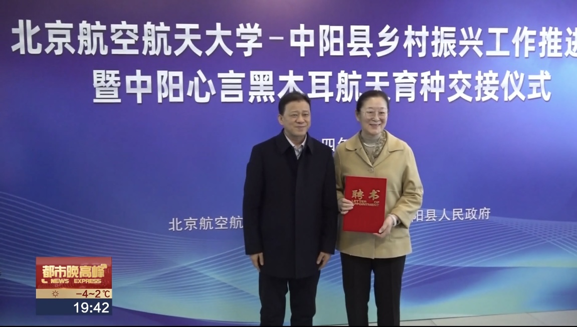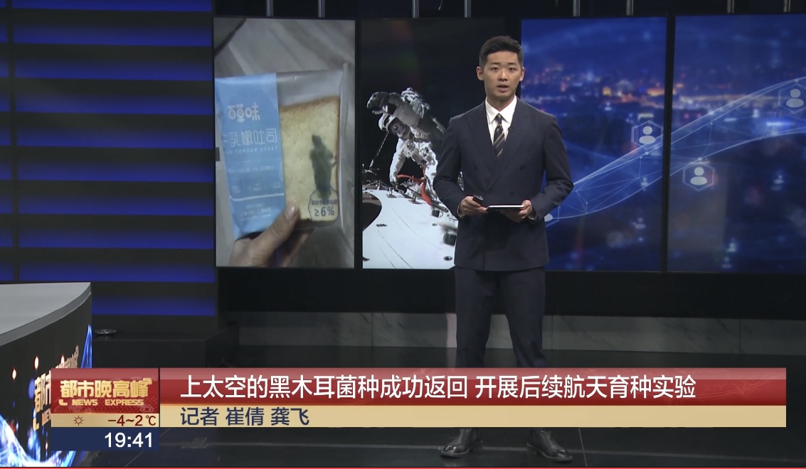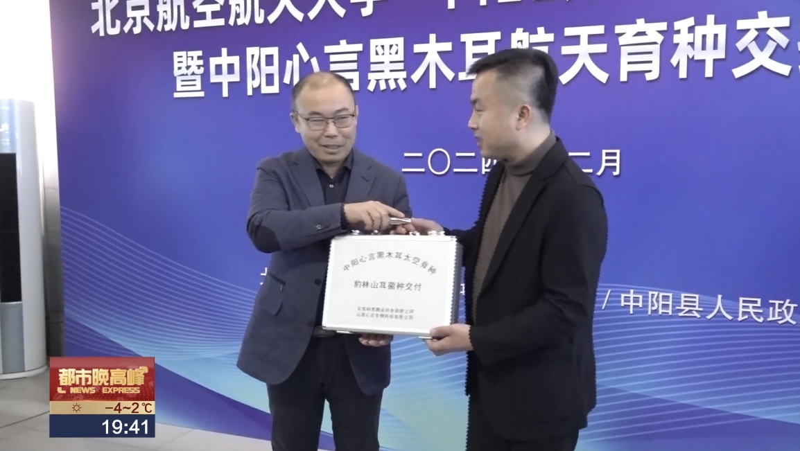 【解说】今年9月27号,我国首颗可重复使用返回式技术试验卫星,实践十九号搭载着黑木耳菌种飞向太空,经过13天16个小时的太空漫游成功返回地球。这批黑木耳菌种来自山西省吕梁市中阳县,是当地的产业支柱。2015年北京航空航天大学定点扶贫和帮扶中阳县,9年接续奋斗,助力中阳从脱贫攻坚迈向乡村振兴,已经帮助当地建成了年产1亿棒菌包的研发生产综合体。未来北航团队将围绕黑木耳多糖开发等科研项目开展航天育种实验,借助空间环境的特殊条件,培育新品种,推动产业升级发展。