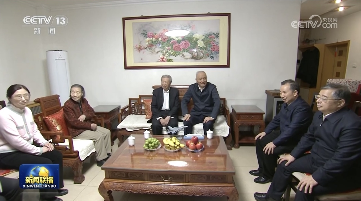 【解说】蔡奇首先来到原文化部部长、“人民艺术家”国家荣誉称号获得者王蒙家中,对他长期以来为中国文学事业作出的重要贡献表示敬意,听取他对做好宣传思想文化工作特别是新时代文艺工作的建议。随后,蔡奇来到中国科学院院士、天体化学与地球化学家欧阳自远家中,亲切询问他的身体和生活状况,充分肯定他在我国探月工程等领域中作出的重要贡献,就天体化学和深空探测领域人才培养听取他的建议。在中国工程院院士、航空动力专家刘大响家中,蔡奇对他为我国航空发动机设计研究和实现跨越式创新发展作出的重大贡献表示肯定,刘大响对航空航天工程科技人才培养提出建议。在看望中国社科院学部委员、“经济研究杰出贡献者”国家荣誉称号获得者张卓元时,蔡奇肯定他对我国经济改革和发展起到的重要推动作用,对他退休后依旧积极参加有关学术交流活动、关心年轻学者成长表示感谢,并听取他对做好哲学社会科学工作、建构中国自主经济学知识体系的建议。