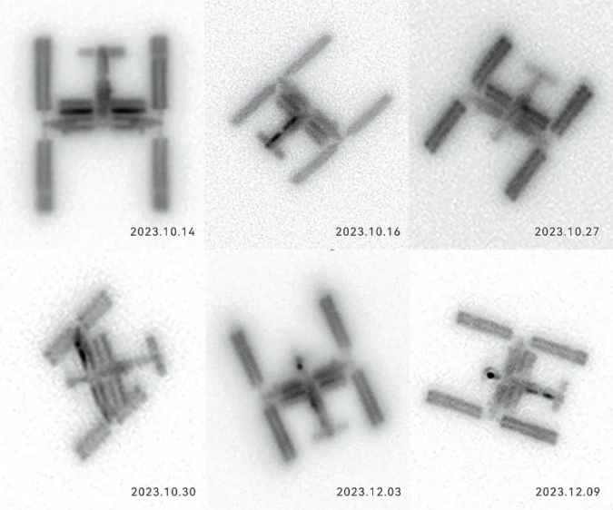 白天使用望远镜跟踪拍摄的中国空间站各类组合体构型