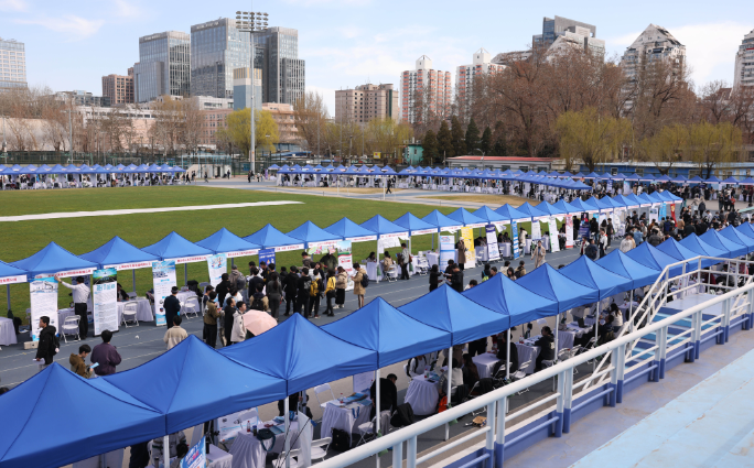 3月19日下午,在北京航空航天大学学院路校区举办的2025年春季首场大型综合双选会上,350余家校招企业的展台铺满田径跑道,学生们手持简历在人群中穿梭,寻找感兴趣的企业单位。据介绍,这些企业单位性质涵盖央国企、民营企业、事业单位、部队等,涉及制造业、信息技术、教育、金融业等16个行业,将提供岗位约1.97万个。