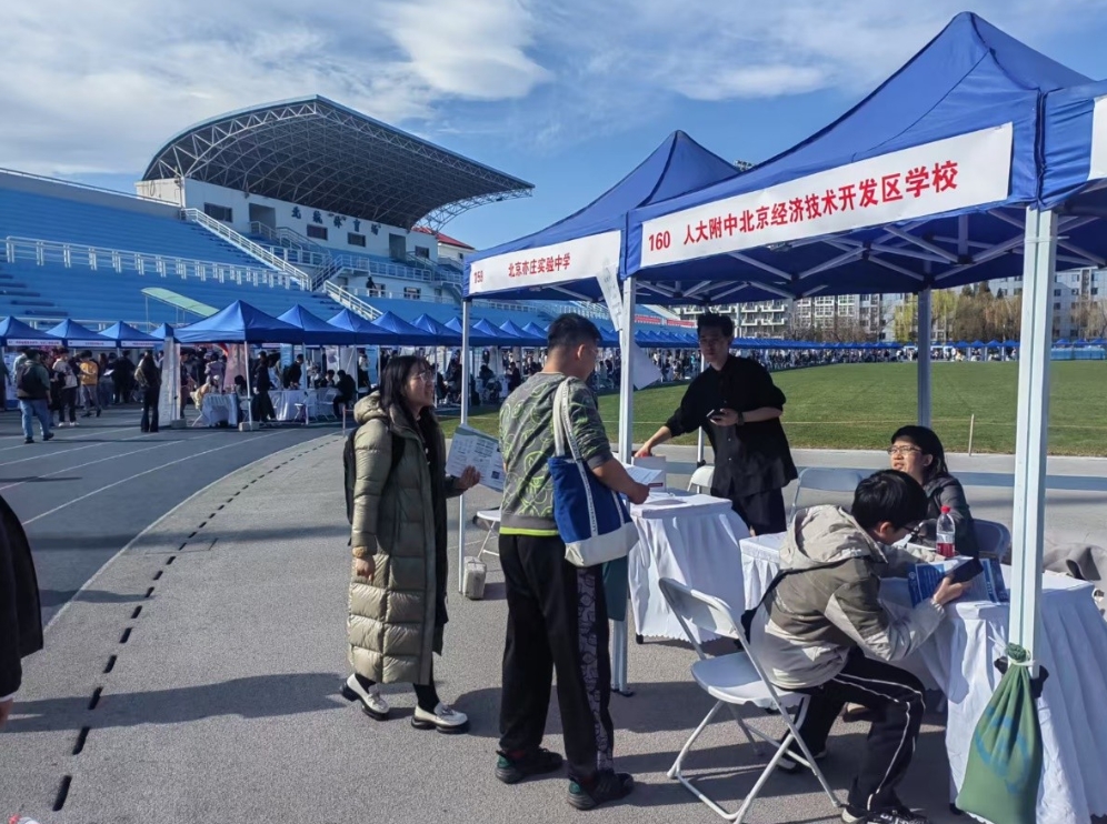 记者发现,本次双选会上不乏北京市高职院校和中小学校的身影。北京电子科技职业学院、北师亚太实验学校、人大附中北京经济技术开发区学校、北京亦庄实验中学等学校也纷纷来招聘教师。