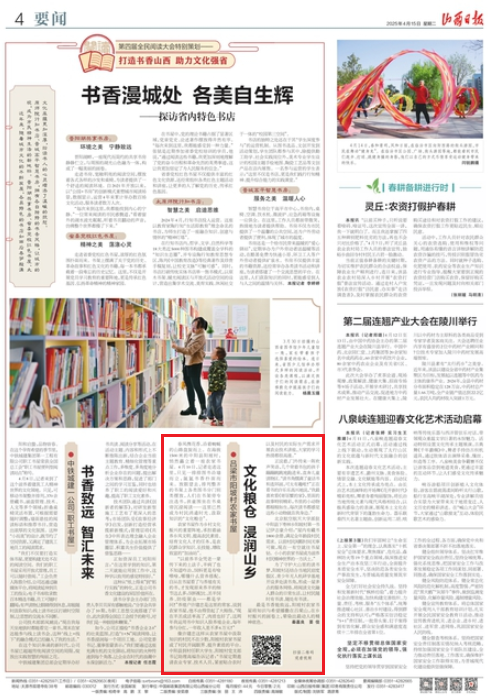 《山西日报》2025年4月15日【第四届全民阅读大会特别策划——打造书香山西 助力文化强省】栏目(秦嘉良 要佳)报道: