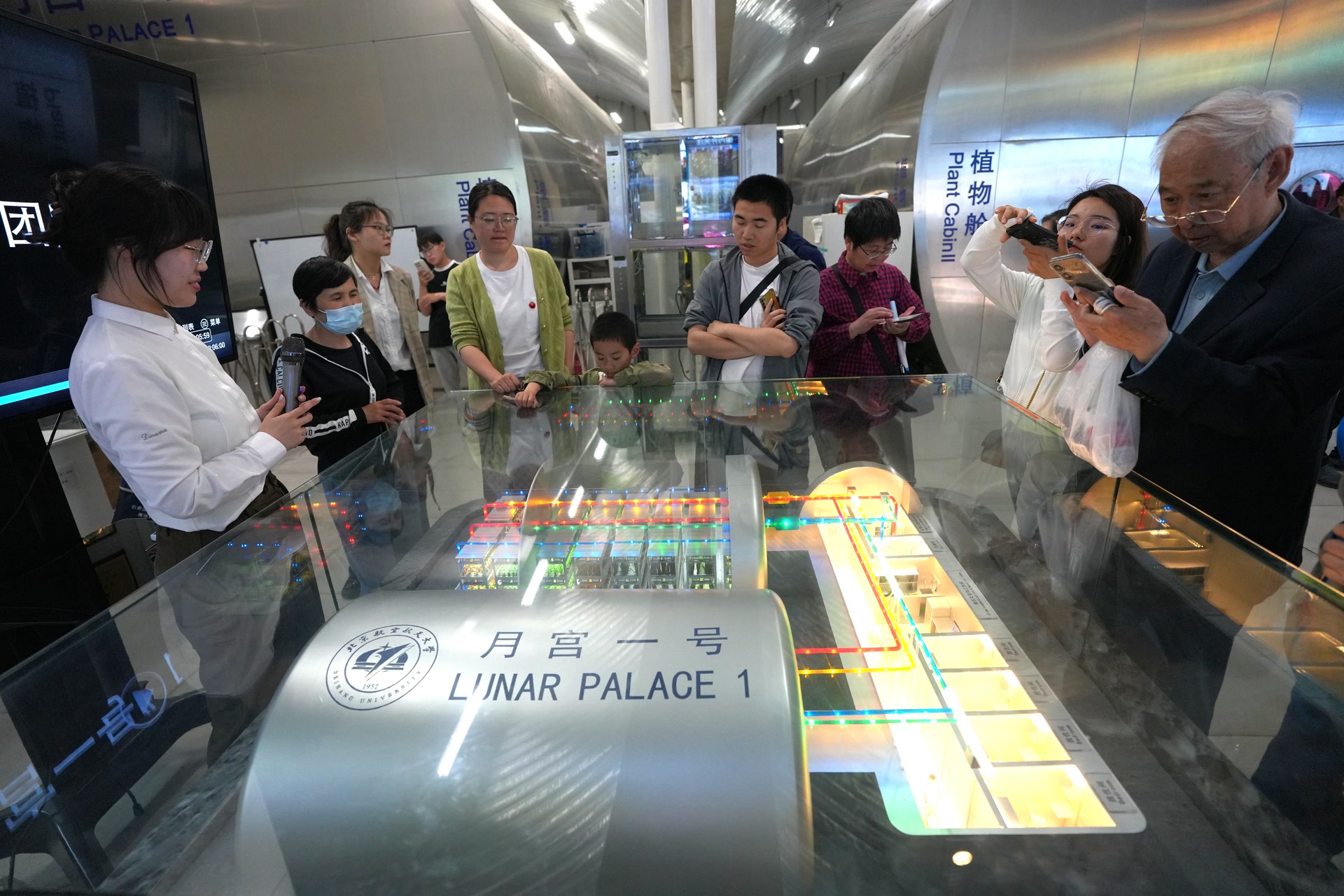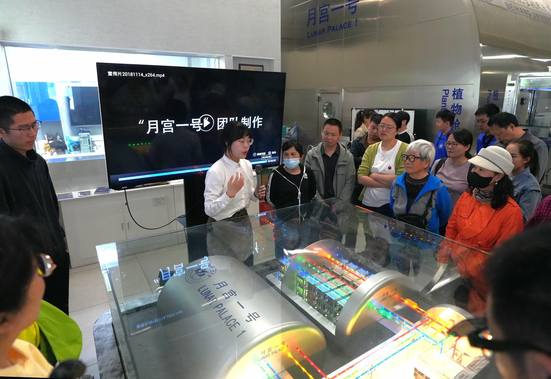 北航“月宫一号”科普基地开放参观,校外观众观摩月壤种菜