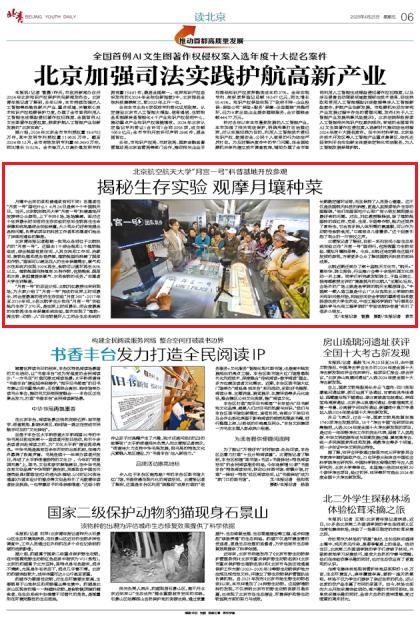 北青报记者了解到,目前一系列空间小型生态系统实验正在“月宫一号”里进行,包括微重力生物实验、模拟月壤种菜等。今后,北航还将定期在这里开放预约参观,方便更多公众了解我国航天科技的前沿成果。
