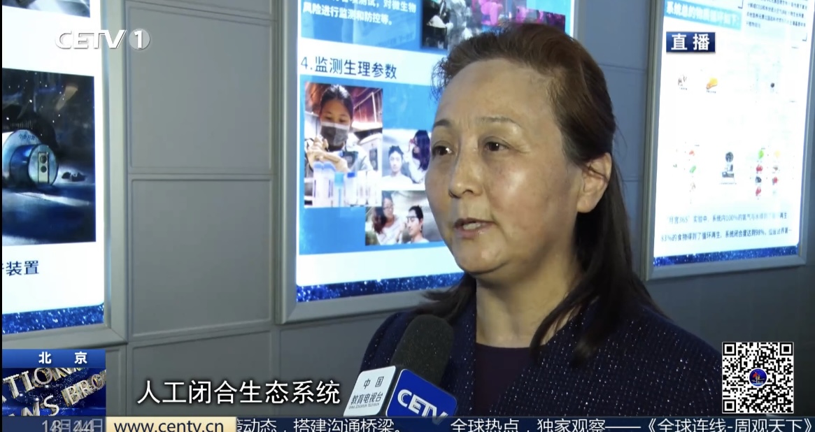 【同期】北京航空航天大学生物与医学工程学院教授 “月宫一号”总设计师 刘红:在世界上首次构建了由人和植物、动物、微生物组合在一起,构成的一个四生物链环的人工闭合生态系统。那么我们这个系统的闭合度达到了世界上最高,就我们达到98.2%,为我们今后人类的载人深空探测提供非常重要的技术支撑。