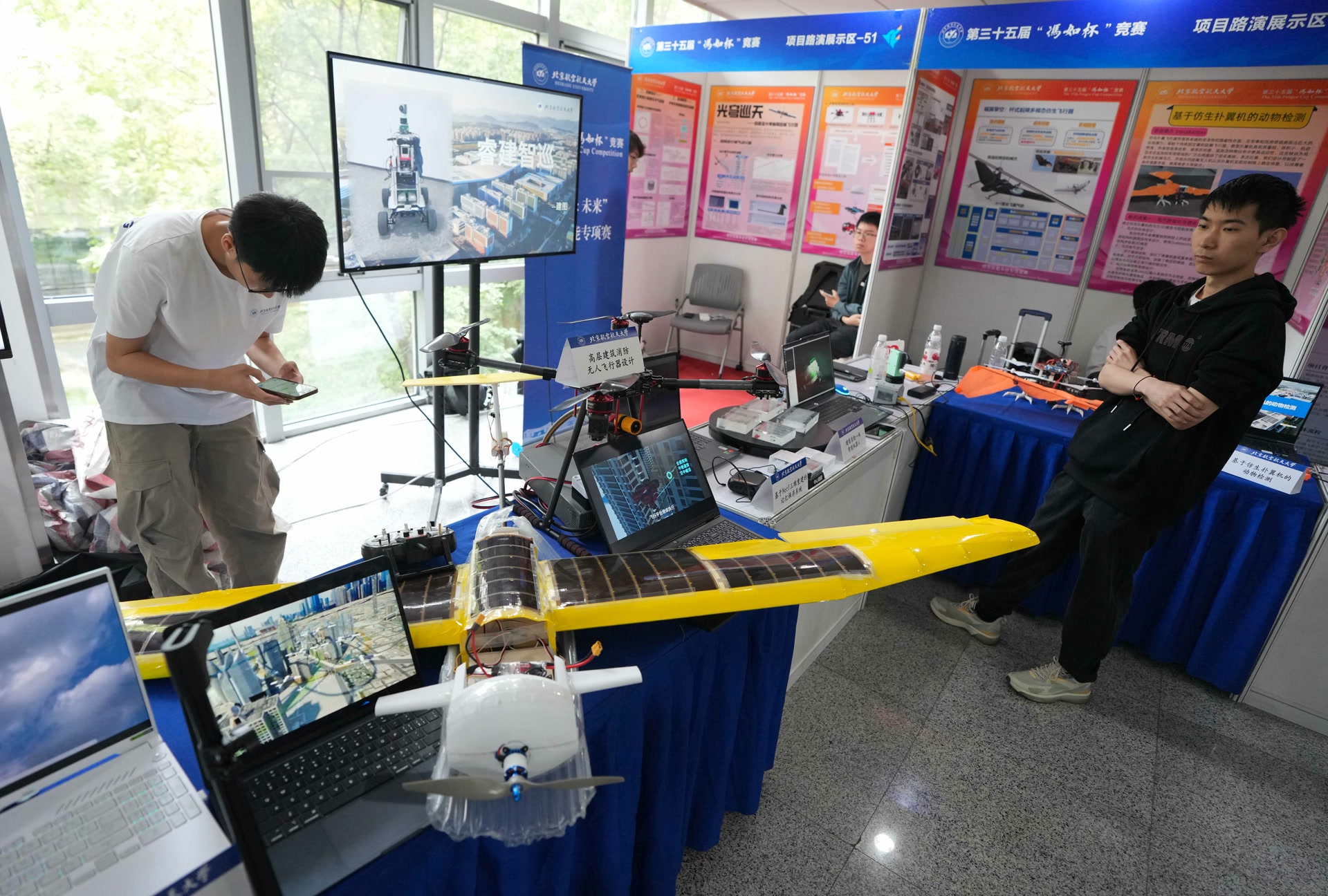 5月18日,北京航空航天大学学院路校区举办北航第35届“冯如杯”竞赛展览展示活动,并同期举行制作组公开答辩。现场有110个展位,400余项学生科技创新作品展出,邀请校外评委与学生评委共同打分。学校还将邀请全国重点高中携科技作品参展,展示学?!捌艉降际Α弊ㄏ钚卸晒贫笾邢谓?,启智科技创新。
