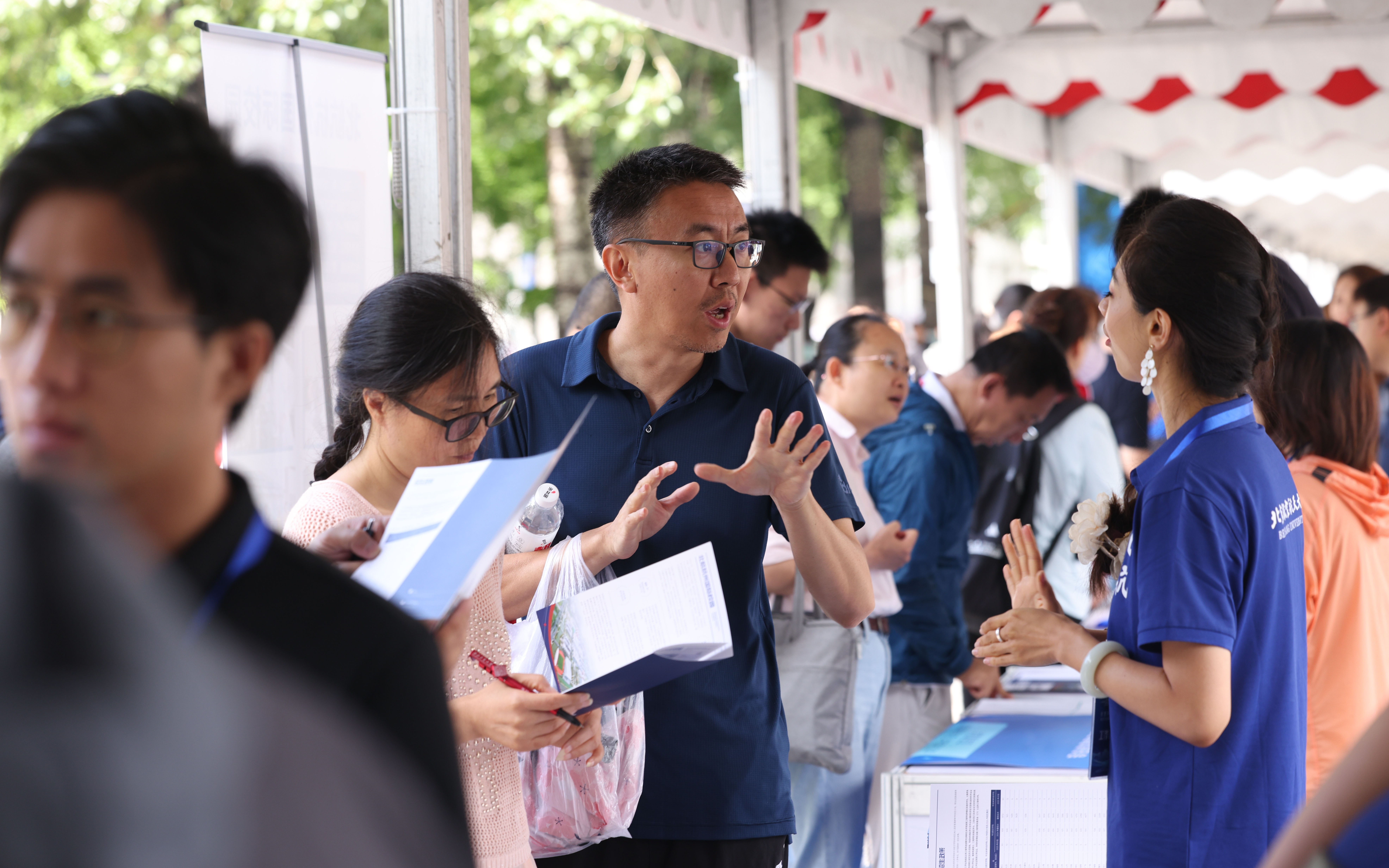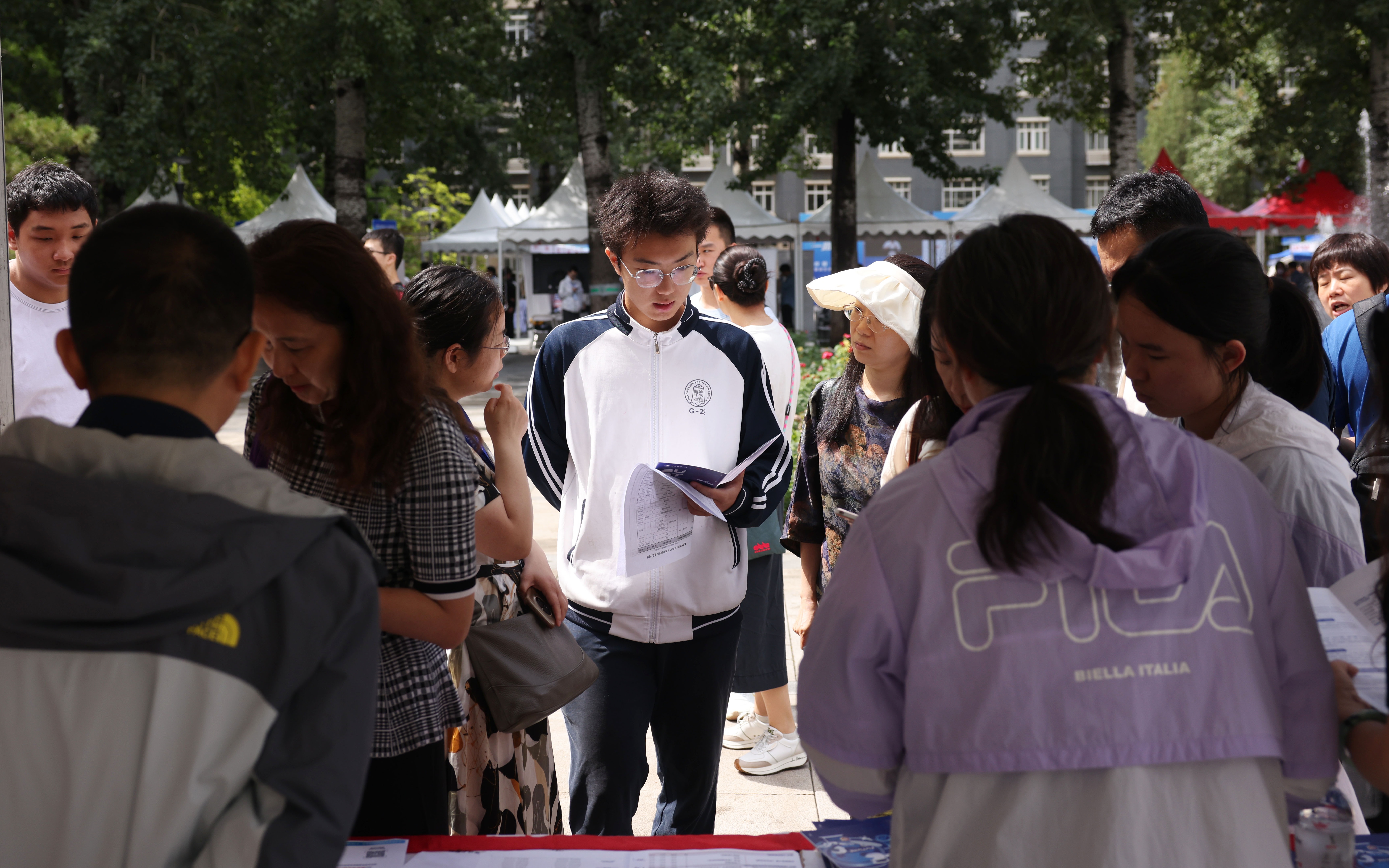 北京航空航天大学学院路校区求是广场,前来进行高招咨询的考生和家长络绎不绝。 新京报记者李木易 摄
