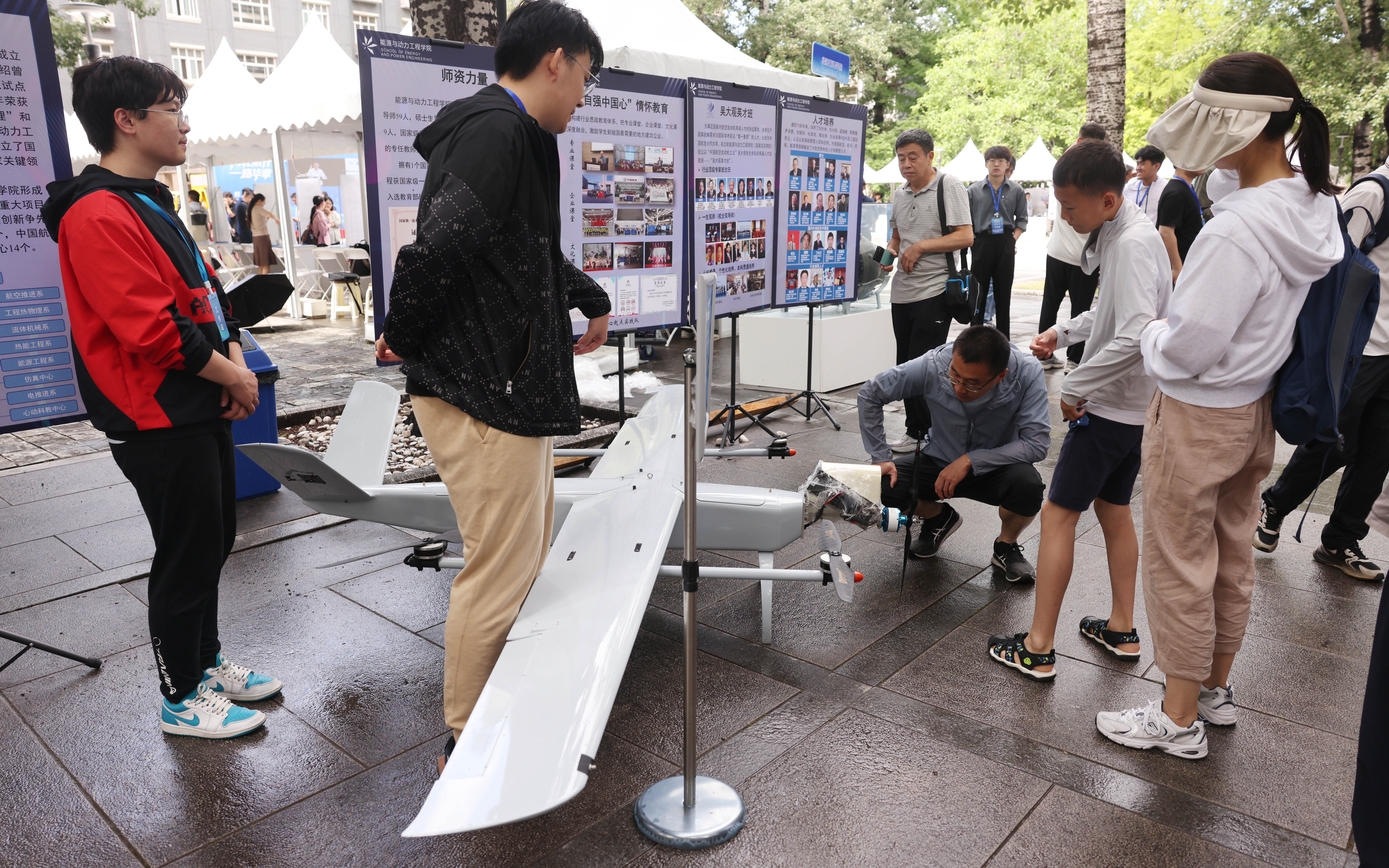 北航各本科招生学院展示飞机、发动机、机器人等科研成果。 新京报记者李木易 摄