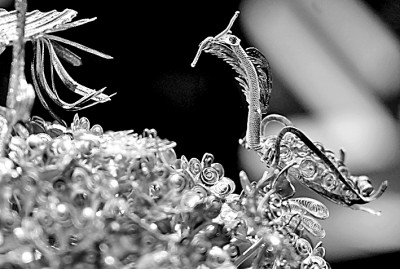 北京服装学院民族服饰博物馆展出的黄平苗银凤冠局部。新华社发