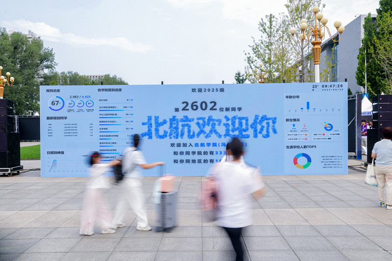 长空万里,金秋启航。8月29日-30日,4425名2025级本科新生在京杭两地三校园报到,与北航如约相见,开启人生新篇章。今年,北航本科生迎新现场分别设置在学院路校区求是广场、沙河校区世纪之声广场、杭州国际校园师生服务大厅。