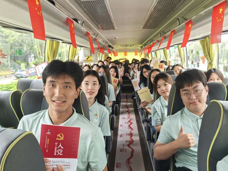 志愿者培训及演练期间,中国石油大学(北京)志愿者在前往爱国主义教育基地及志愿服务岗位的大巴上开启“大巴思政课”。受访者供图
