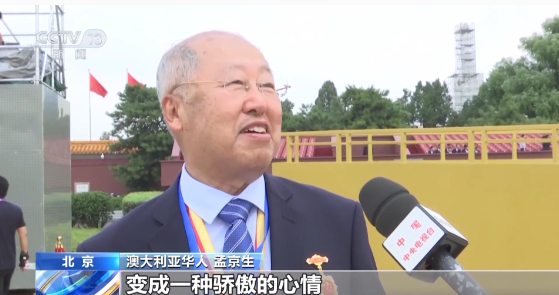 澳大利亚华人 孟京生:当军号响起、轰鸣的飞机开过来时,我就觉得震撼,心灵上的震撼,紧接着变成一种骄傲的心情,特别得意、扬眉吐气。中国军力的强大是世界和平的压舱石。