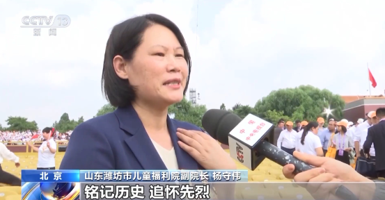 山东潍坊市儿童福利院副院长 杨守伟:我带着孩子们和老师们的期盼、祝福,现场观看了大阅兵。铭记历史、追怀先烈。我们始终心向光明、热望和平。祖国强大、军事威武,我们倍感振奋和自豪。