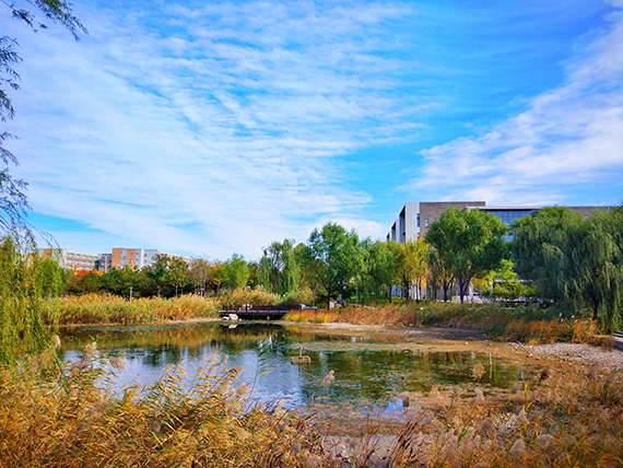 北航的秋是沉稳的,一池南湖秋水,承载着地上红红火火和天空澄碧幽蓝,微波荡漾,映着学子们忙碌的身影和教学楼岿然的身姿。
