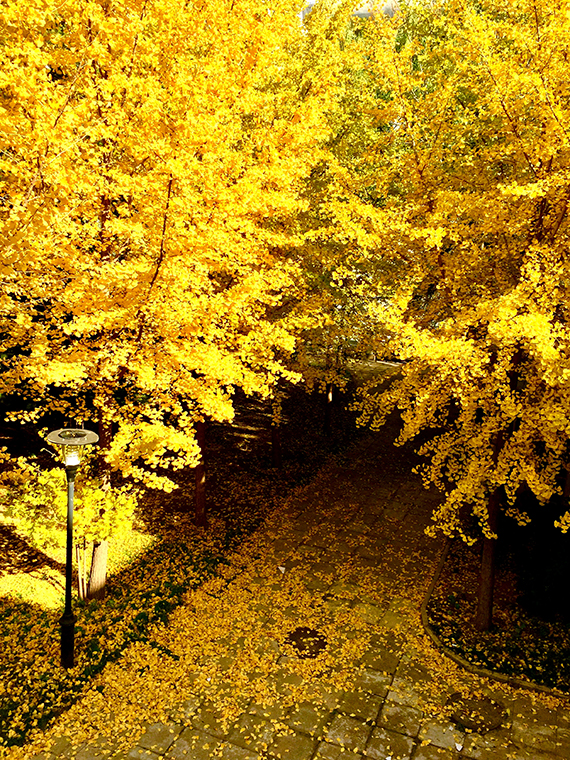 北航的秋是慷慨的,大笔大笔的撒着金黄,铺满了的,是图书馆前幽幽的银杏林,是绿园内外长长的座椅,是宿舍楼前熙攘的小路,是沙航脚下康庄的大道,是主楼两旁静谧的长廊... ...