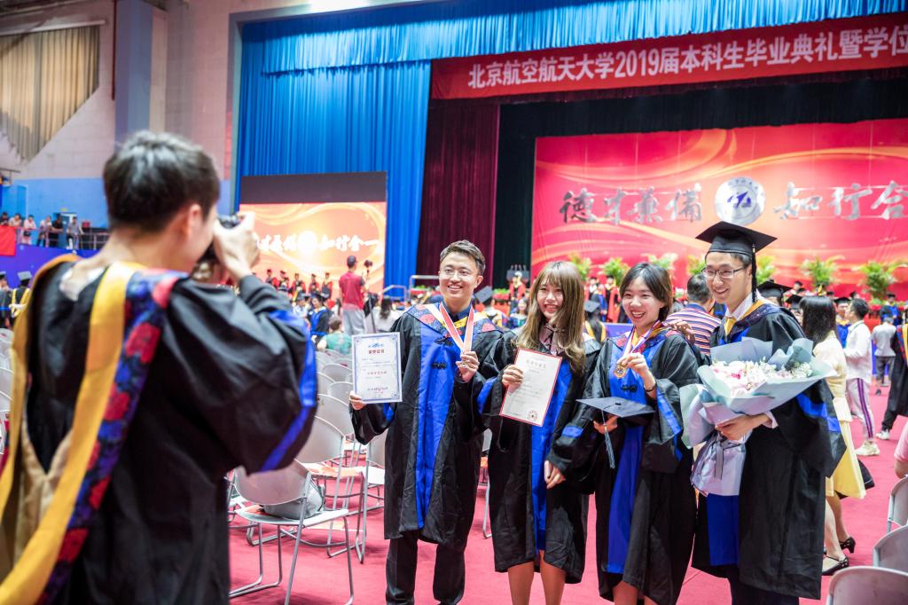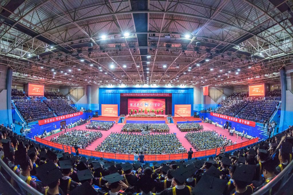 2019年6月15日上午,北京航空航天大学2019届本科生毕业典礼暨学位授予仪式在北航体育馆举行,来自27个学院的3000余名本科毕业生及部分毕业生亲友参加典礼,共同见证2019届本科毕业生的美好时刻。