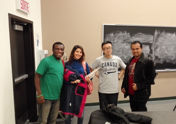 早上七点,该坐机场巴士去学校了。虽然做过功课,面对密密麻麻的法语版地图和法语购票机还是蒙圈了,我就在那看了十几分钟,不敢用购票机买票。这时候一个本地人看出了我需要帮忙,问我要去哪儿,我说去康大,他就很详细地告诉我坐什么车,在哪儿换乘地铁等等。于是我就放心地用机器买票了,塞进从商店找零的20刀,然后机器把钱吞了,不给出票,这相当于亲眼看见一张毛爷爷被粉碎了。好不容易找到一个穿制服的工作人员,他们也没办法。最后无奈我去找刚到机场的司机,司机很热心的就帮我看机器,按了几下也没有反应。司机最后摊手说 “我送你一张免费的票吧”,瞬间感慨,这里的人好心肠啊。巴士上,一个黑人小哥主动帮我把行李搬到行李架上。