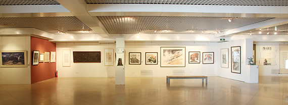 相比于之前展览所展出作品的疏落有致,本次的十周年展出的展品数量更多,形式也更多样化,有一种百花齐放之感。一件件看过去,我看到了一些熟悉的作品,也有一些新的发现。国画是清新空灵,油画是浓墨重彩,传统艺术是厚重古朴,现代艺术是新奇有趣。如果说绘画作品是整个展览的华裳,那么书法作品就是其妆容,过分的浓重让人审美疲劳,需要大气简洁的书法技艺予以中和;除此之外,那些散落在角落的雕塑和现代艺术作品,又像是一件件点睛的首饰,合适地搭配和点缀着整个展览。因此,若将艺术馆比作平日里尽职尽责的展品模特,那么这一次它就是舞台的主角,每一件作品都成为了其簇拥,它们彼此配合,相互补充,合力展现艺术馆本身的光芒。