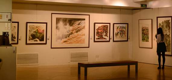 纵观整个展览,首先是被布展人细心的布置打动,因为此次展览涵盖了曾在此参展过的海内外艺术家捐赠的艺术作品近百件(组),涵盖中国画、油画、版画、雕塑、书法、摄影、综合材料、装置、新媒体等十多个艺术门类。那么要将这么多门类的展品整合在这样一间展厅中需要巧妙的构思和安排。既要有每个展品的特点,又要体现整个展览的整体性。其次,这次展品的质量都非常的高。行走在这个馆内,可以充分感受艺术带给自己的洗礼,里面有好多幅作品我都非常喜欢。