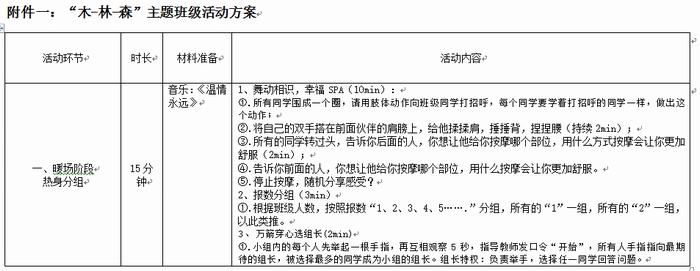 每个个体在班级中就如同一棵树木,每个宿舍、小团队在班级中就如同一片小树林,只有相互组合在一起,才能成为茂密葱郁的森林。“木-林-森”主题班级活动通过粘土、绘画等学生喜欢的艺术性表达方式让班级中的同学加深对自我的认识,了解他人,以此提升班级心理文化建设,构建和谐班级氛围。