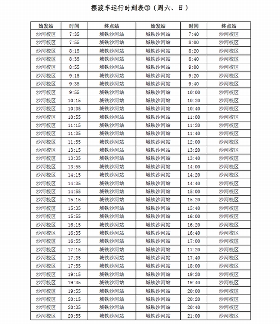 (二)本科生放假期间(7月4日—9月1日)周末无摆渡车。