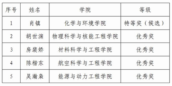 5位获奖学生学习能力强、科研素养高、综合能力突出。肖镇同学科研能力出众、国际视野广阔,已发表两篇SCI学术论文,在赴加拿大科研实习过程中表现优异。胡世渊同学奋发自强、积极进取,曾获我校“励志成长成才表率”荣誉称号。房裴娇同学学习刻苦、成绩优异,连续两年获评校优秀生。陈楷东同学实践能力强、创新意识出众,物理实验成果论文被期刊《物理实验》收录。吴瀚枭同学科研经历丰富、学习成绩出色,连续两年获评国家奖学金。