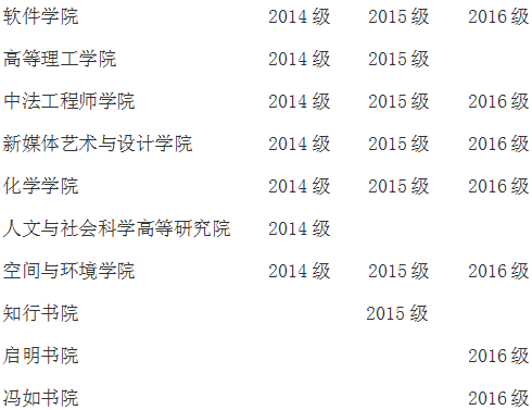 注:马克思主义学院无本科生,以上学院(书院)2013级本科生均已毕业,人文社会科学学院、外国语学院、法学院、人文与社会科学高等研究院无2015级、2016级本科生,知行书院无2014级本科生,启明书院、冯如书院无2014级、2015级本科生,均不在此次公布名单之列。