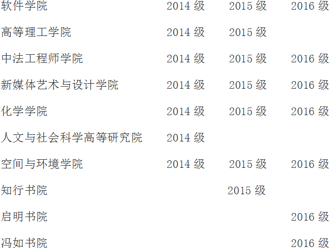 注:马克思主义学院无本科生,以上学院(书院)2013级本科生均已毕业,人文社会科学学院、外国语学院、法学院、人文与社会科学高等研究院无2015级、2016级本科生,知行书院无2014级本科生,启明书院、冯如书院无2014级、2015级本科生,均不在此次公布名单之列。