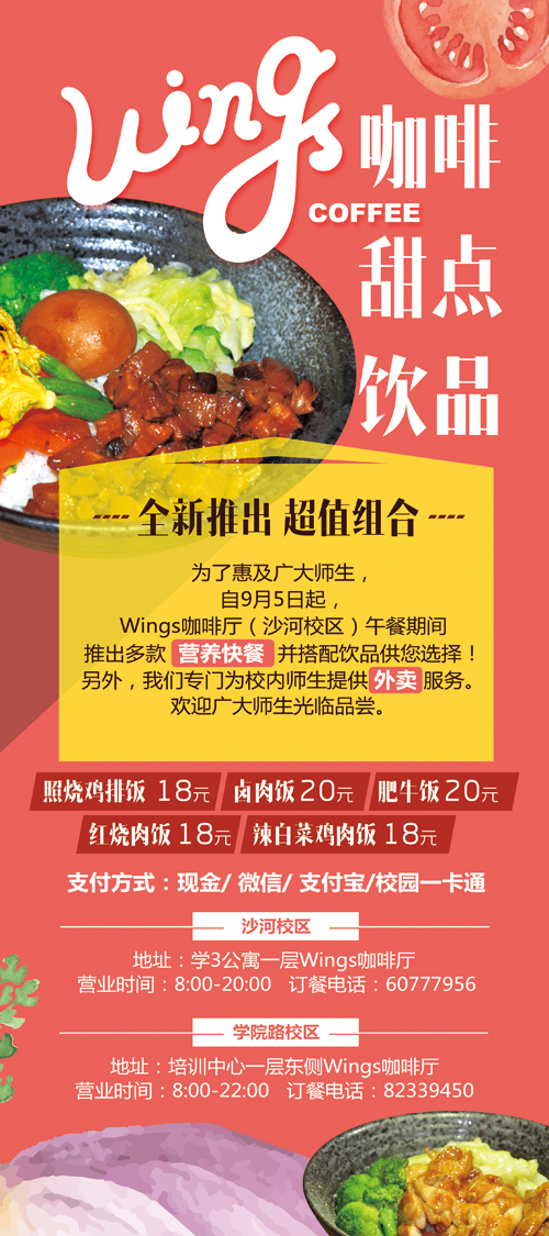 为了满足广大师生多元化就餐需求,自9月5日起午餐期间,我们特别为您提供多款中西式营养快餐