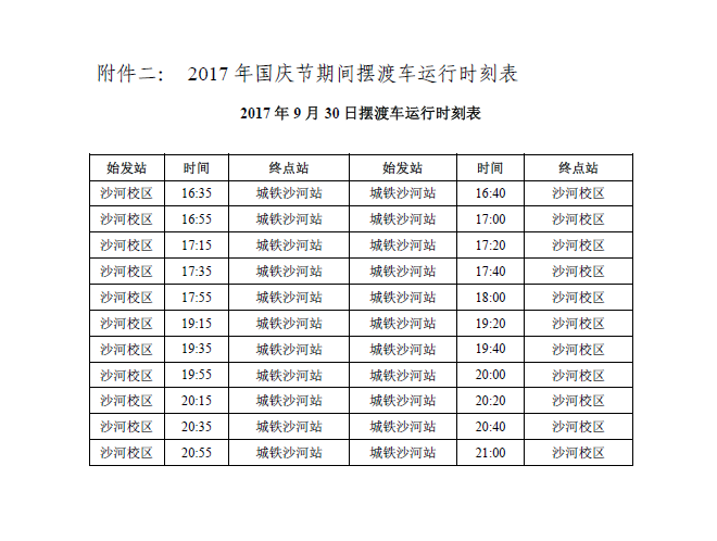 附件二:2017年国庆节期间摆渡车运行时刻表