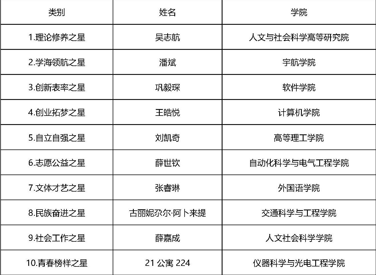 根据《北航榜样大学生年度人物评选办法》,坚持公开、公平、公正的评选原则,经学院推荐,评委会初评、网络投票、现场复评,评选出2017北航榜样—大学生年度人物,现将结果公示如下: