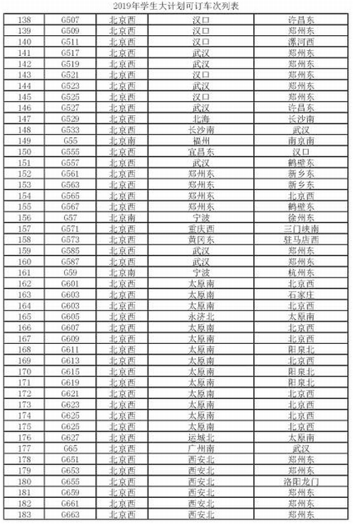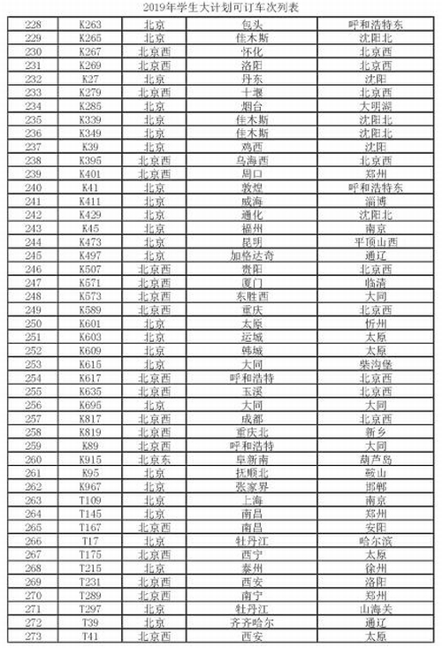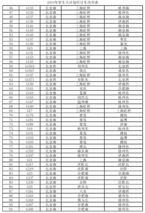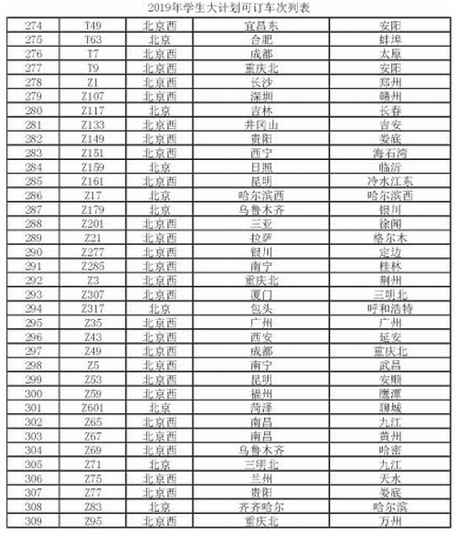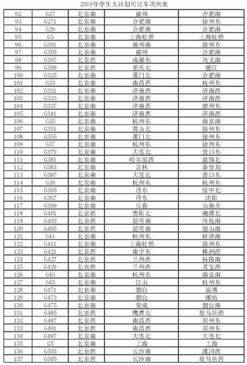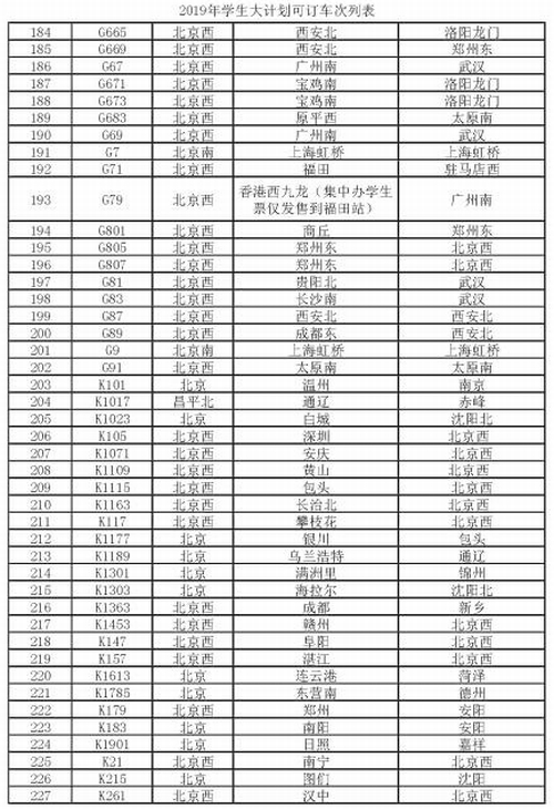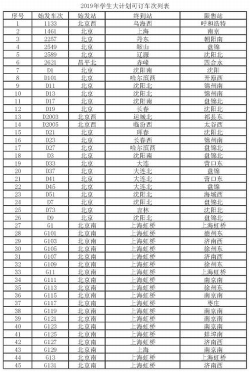 1)为优先满足长途学生需要,2019年春运将执行各车次的限售区段,办理包含限售站在内的以远站(即限售站到终点站间)各站车票。(见附件)