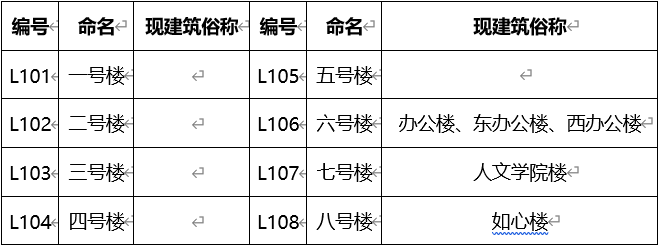 表6 学院路校区配套建筑命名