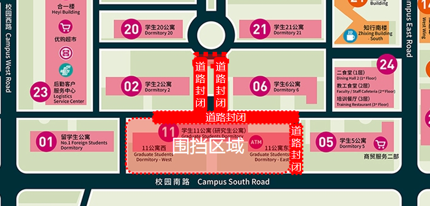 学校将于近期启动学生11公寓改造工程并搭建施工围挡。为保障施工期间车辆及行人安全,同时确保施工顺利进行,拟定于2020年7月20日至2021年1月31日封闭学生11公寓北侧及东侧部分道路,详细位置如下图所示。施工期间,后勤保障处将在各封闭路段两侧设置应急开关门并安排专人进行全天候值守,保障封闭路段应急通车功能,如遇消防、救护、抢修等紧急情况,请拨打24小时电话:13693657324。封闭路段外围道路禁止停车或堆放各类物品,确保应急通道畅通。感谢您对学校工作的支持与配合,施工给您带来的不便,敬请谅解。