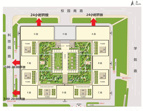目前按学校的疫情防控总体要求开放4个出入口,分别为:A座北门、E座西门、F座西门和G座北门(详见下图),其他楼门暂不开放??攀奔淙缦拢?/p>